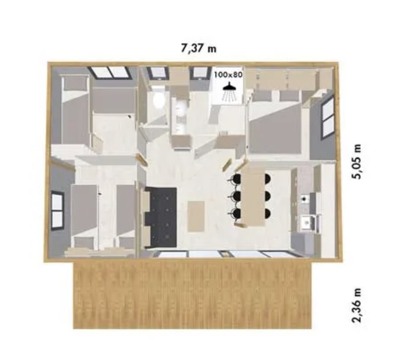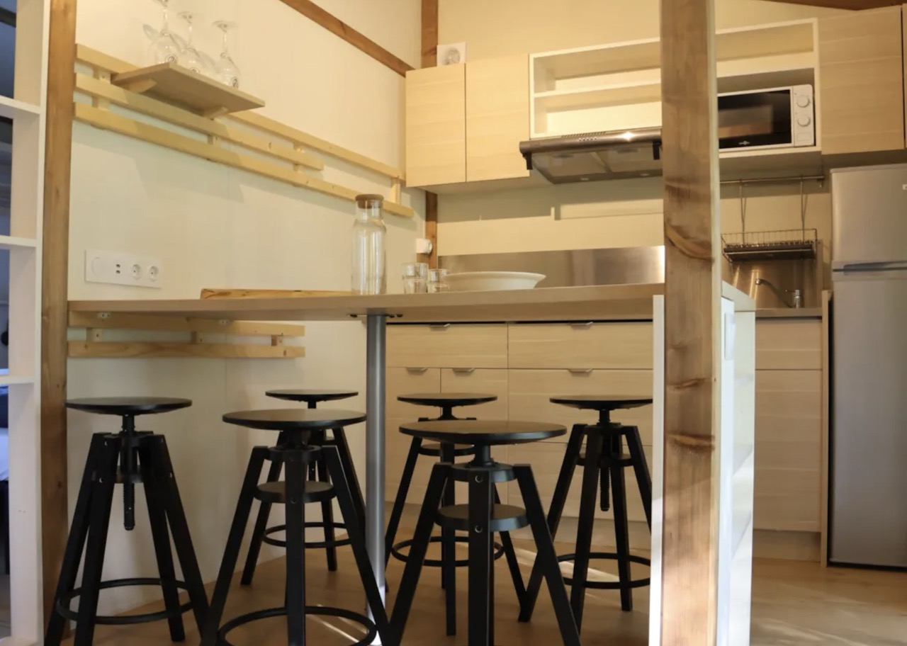Le grand éco lodge 4 saisons peut accueillir jusqu’à 7 personnes, offrant ainsi un séjour confortable et convivial pour les familles nombreuses ou les groupes d’amis.