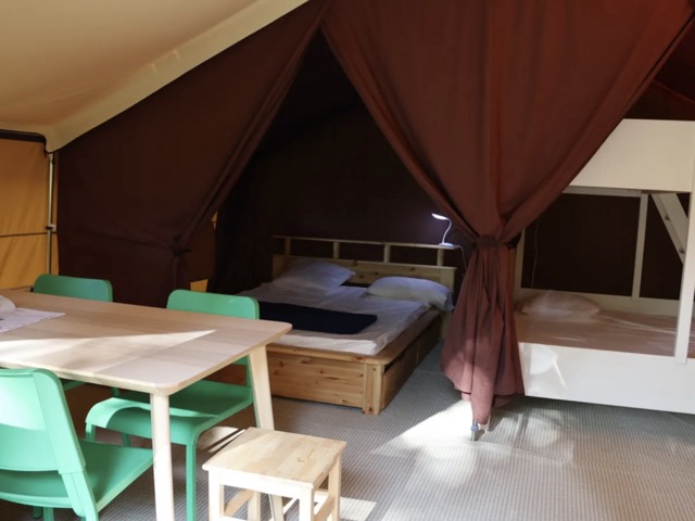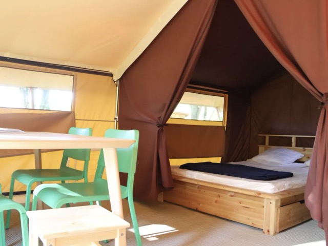 La tente lodge est un mélange harmonieux de toile et de bois, offrant un confort exceptionnel en camping. Idéale pour les familles en quête de détente et de convivialité.
