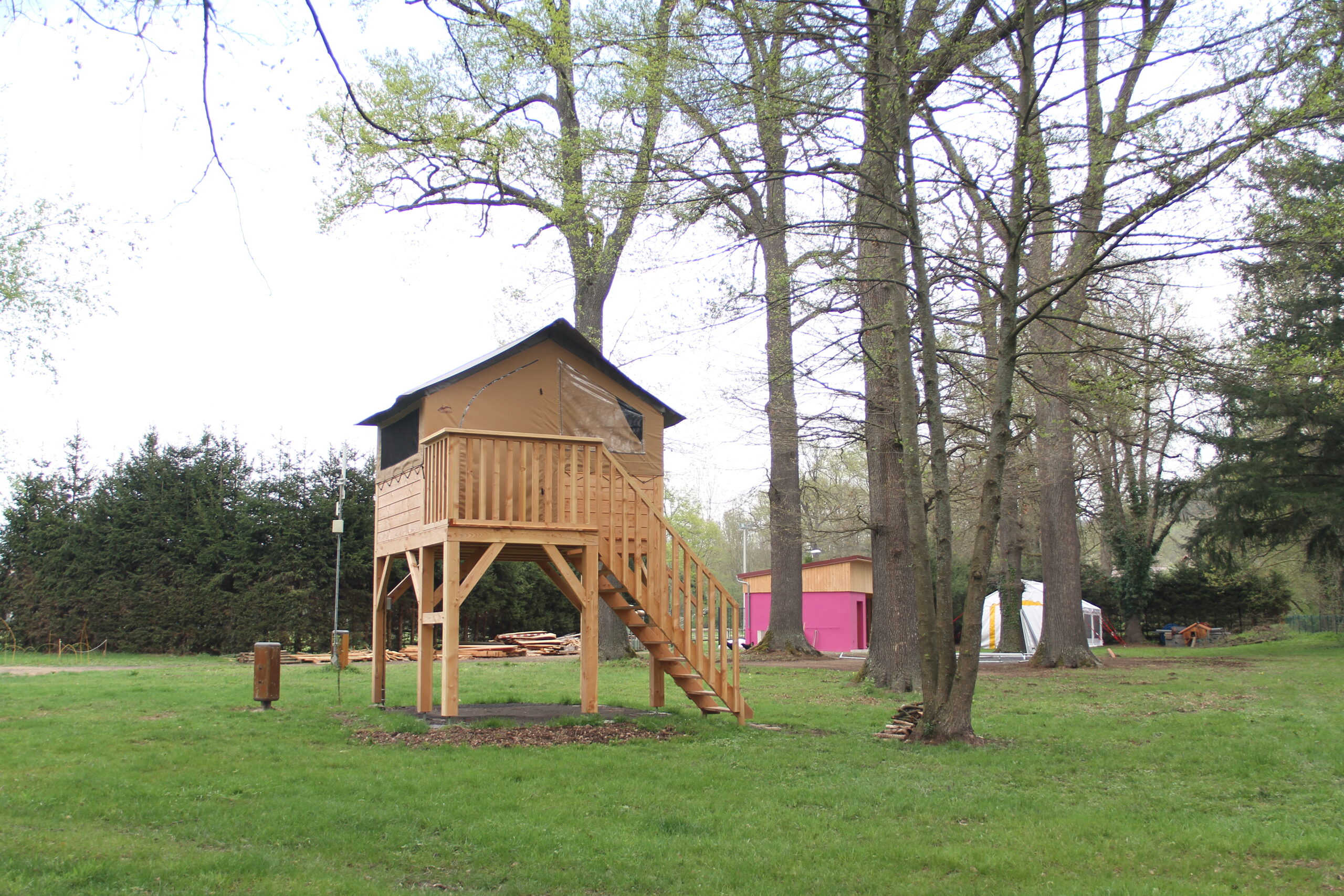 La tente Lodge est un mélange harmonieux de toile et de bois, offrant un confort exceptionnel en camping. Idéale pour les familles en quête de détente et de convivialité.