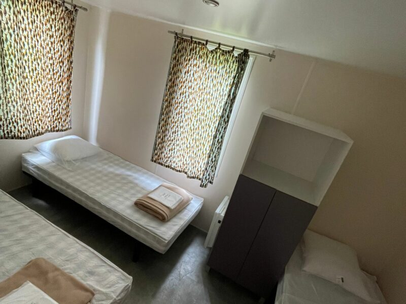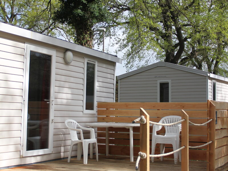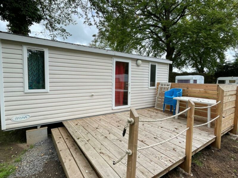 Les mobile-home se situent au fond du camping dans l'allée de gauche, juste avant les caravanes vintage.